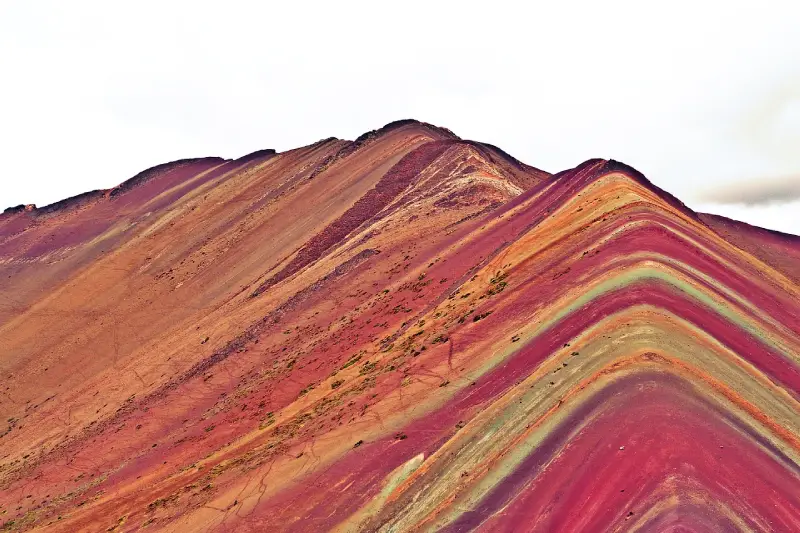 At the summit, you will reach Vinicunca, or Rainbow Mountain. The view is spectacular. You can see the mountain’s full array of colors.